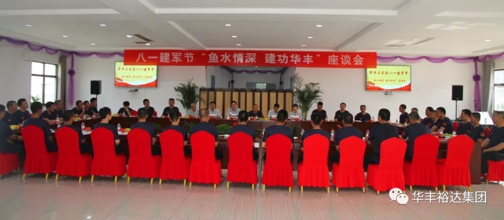 为纪念中国人民解放军建军 92 周年,进一步做好公司退役军人双拥工作,7月31日,公司开展庆八一建军92周年“鱼水情深 建功千亿qy88国际官网入口”座谈会。董事长助理赵凤全,公司党委书记、总经理徐虎明,党委副书记张海恩,总经理助理郭伟,工会主席赵静及优秀退役军人代表共计50余人参加。座谈会由党委副书记张海恩主持。